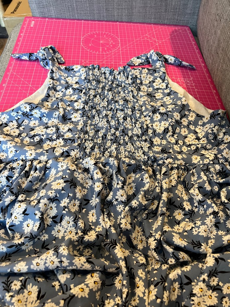 The shirred panel with the partially shirred waistband. It makes the skirt look gathered because of the shirring, so I drafted the skirt so that the rest of it was gathered throughout.