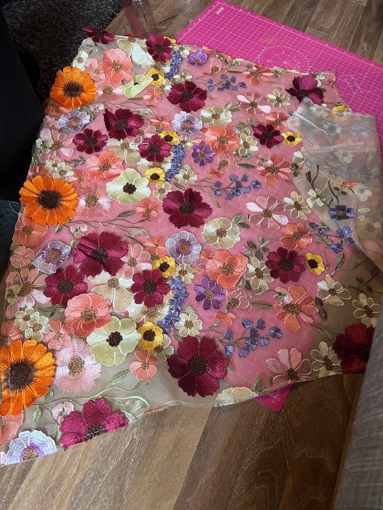 My embroidered fabric was sourced from Etsy but I gather that you can get similar fabrics on other sites. I ordered 5 yards because I knew the embroidery would be sparse in parts and I would want more fabric to make the dress have higher opacity. Pattern-wise, I went straight for the Adrift Shift by Gracie Steele. I made a few toiles of this and knew it fitted me well and had the shape I wanted. However, when I cut my pattern pieces out in the embroidered tulle, I realised that I was going to need to do something to give the dress structure – the tulle wouldn’t hold the A line shape at all. So I went on a journey and learned about underlining. I did research and settled on silk organza; not cheap, but I don’t handle synthetic fibres well and this was meant to be a knockout dress that I could wear on future special occasions. Underlining worked like a dream – the pattern pieces held their shape wonderfully.