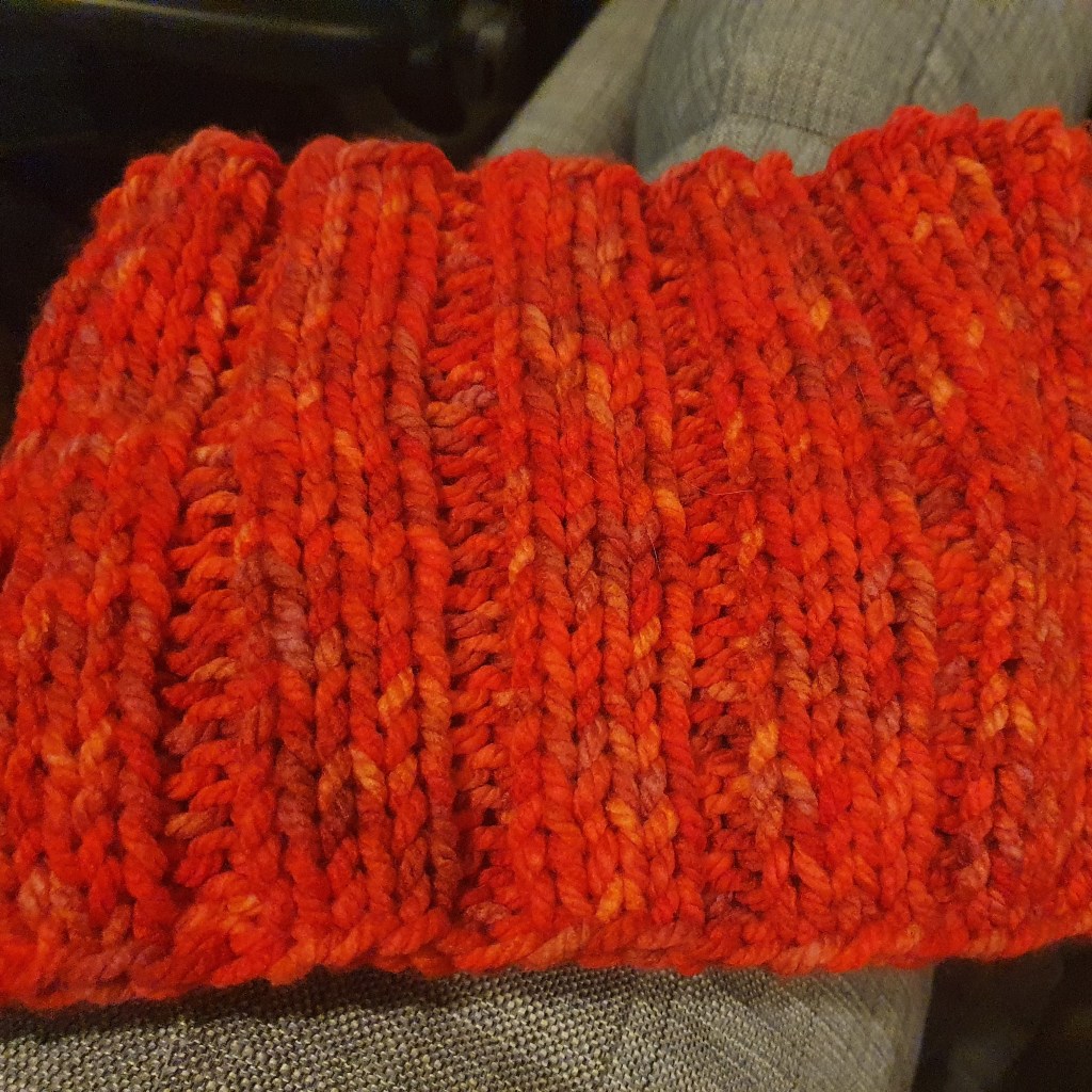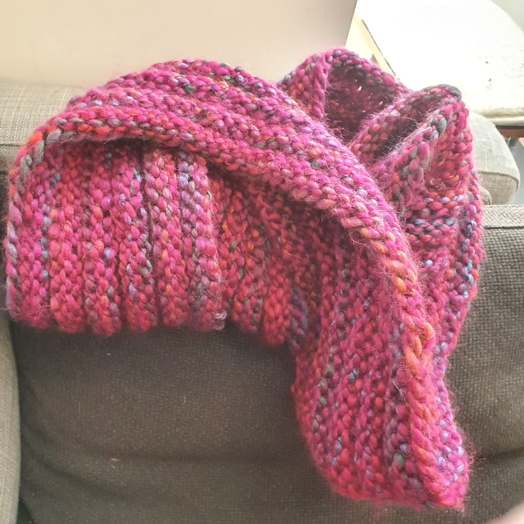 My first infinity scarf sewn in the round (before the ends were weaved in!)